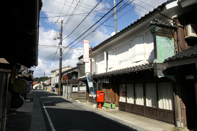 浜崎地区が江戸時代以降に栄えた訳は、萩が城下町となった事のみならず、大阪から下関を経て北陸へと向かう西回り航路が開発され、そこを行く北前船の寄港地になった事も大きい。浜崎港は水産物の水揚げ場であると共に、北前船の停泊場としても栄えたのだ。通りには廻船問屋や船宿が建ち並び、また海産物の加工業や卸業者なども集まって、港を背景とする商家町が形成された。江戸時代の後期には、北前船の大型化により、水深の浅い浜崎港に寄る船が減り、また明治時代には陸上交通の発達により北前船自体が消えてしまったものの、海産物の水揚げは依然活発で、また萩の武家屋敷跡で栽培された夏蜜柑などの交易も盛んとなり、その賑わいが途絶える事は無かった。 ![]() 二階の建ちが低い、厨子二階(つしにかい)の町家も多い