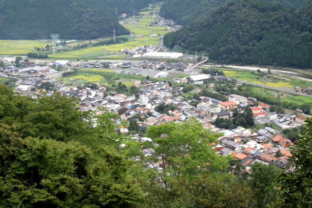 鳥取県の南東部を流れる八東川の上流域に位置する若桜町は、交通の要衝に築かれた山城である鬼ヶ城の城下町を起源とし、江戸時代には鳥取城下へと通じる若桜街道の宿場町として発展した。明治維新後も街道上の商家町として栄えていたが、二度の大火によって町のほぼ全域が焼失するという憂き目に遭う。その復興に際しては防火を強く意識した町作りがなされ、現在も若桜には大火直後から昭和30年(1955年)頃までに築かれた町家が多く残っており、大火を経て復興を遂げた商家町としての歴史的風致を今に伝えていることから、本通り沿いの延長約910メートル、幅約250メートルの範囲が国の重要伝統的建造物群保存地区に選定された。 ![]() 鬼ヶ城の三の丸から眺めた若桜の町場