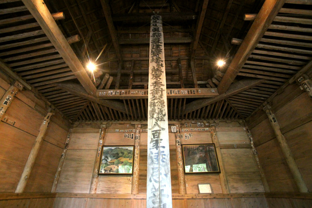 平安時代末期、東北地方に一大勢力を築いた奥州藤原氏。その拠点として繁栄を極めた平泉には、浄土思想に基づいて築かれた寺院や庭園が数多く残されている。初代藤原清衡(ふじわらのきよひら)が建立した中尊寺は、関山(かんざん)と呼ばれる丘陵に境内を構える天台宗の仏教寺院だ。尾根沿いに伸びる参道の奥に、現在は鉄筋コンクリート造の覆堂に守られた金色堂が鎮座する。その名の通り、屋根以外の建物全体に漆塗りと金箔を施し、様々な装飾によって内陣を飾り立てた豪華絢爛な阿弥陀堂であり、阿弥陀如来が治める極楽浄土を表現している。平安時代における工芸技術の粋ともいえる傑作として名高く、文化財保護法が施行された直後の昭和26年(1951年)に国宝に指定された。 ![]() 明治42年(1909年)に再建された、中尊寺の本堂