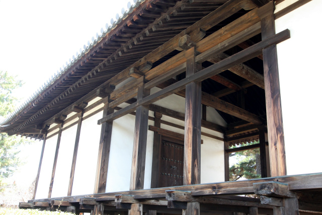聖徳太子こと厩戸皇子(うまやどのおうじ)が推古天皇15年(607年)に創建した斑鳩寺(いかるがでら)を前身とし、天智天皇9年(670年)の大火後に再建された法隆寺。その中枢にあたる西院(さいいん)伽藍の東側はかつて寺務を担っていた区域であり、綱封蔵(こうふうぞう)、食堂(じきどう)及び細殿(ほそどの)の三棟が現存する。そのうち「綱封蔵」は寺宝を保管するための倉であり、古代における「双倉(ならびぐら)」の様式を伝える存在として国宝に指定されている。また「食堂」は法会の際に僧侶が食事をする場所であり、その前室にあたる「細殿」と共に「双堂(ならびどう)」の様式を伝えるものとして食堂は国宝に、細殿は重要文化財に指定されている。 ![]() 「綱封蔵」は二つの倉を一つの屋根で覆った双倉である