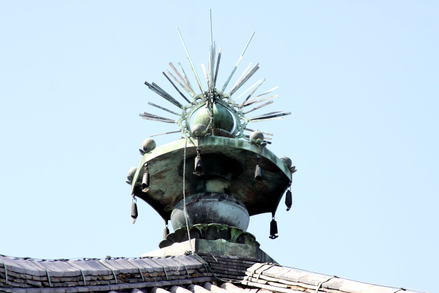 推古天皇9年(601年)に斑鳩宮を造営した聖徳太子は推古天皇13年(605年)に移り住み、推古天皇15年(607年)には亡き父である用明天皇のため斑鳩宮の西側に斑鳩寺を創建した。推古天皇30年(622年)に聖徳太子が死去した後も、斑鳩宮は聖徳太子の子である山背大兄王(やましろのおおえのおう)の宮殿として利用されて続けていた。しかしながら、山背大兄王の一族は皇極天皇2年(643年)に対立していた蘇我入鹿(そがのいるか)によって滅ぼされ、その際に斑鳩宮は火を放たれ灰燼に帰した。また斑鳩寺は天智天皇9年(670年)に起きた大火によって焼失したが、間もなく再建が始められ、奈良時代の初頭までに現在の法隆寺西院伽藍が整備された。 ![]() 「夢殿」の頂上に据えられている露盤宝珠