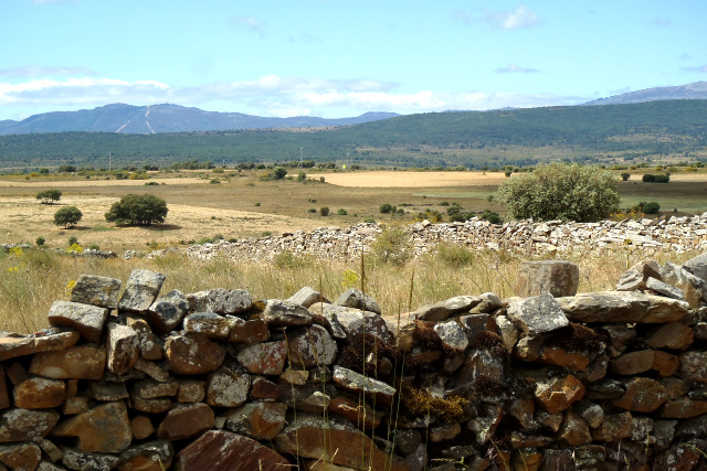 カストリージョでだいぶ時間を使ってしまった事もあり、サンタ・カタリナの村に着いたのは正午少し前の事であった。他の巡礼者はもうとっくに先へ行ってしまい、集落内はしんと静まり返っていた。 私は一人、公園のベンチに腰掛けて昼食を取る。静かなのは良い事ではあるが、ここまで静かだと何だか不気味だ。まるでゴーストタウンのようである。私は早々に昼食を切り上げ、先を急ぐ事にした。 ![]() 牧場……なのだろうか、動物はいない