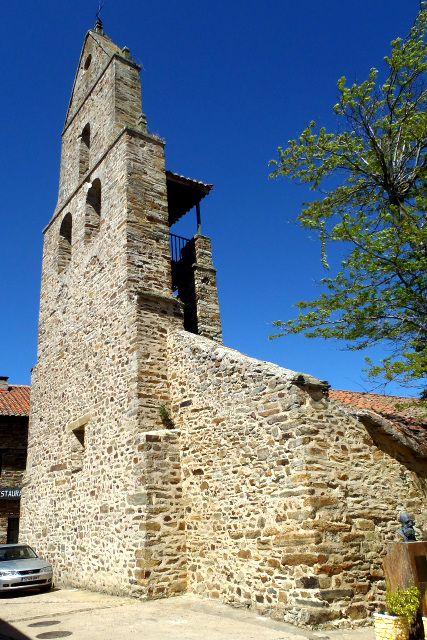 シャワーと洗濯を手早く済ませた私は、いつもの如く村の散策へと出た。アルベルゲから目抜き通りに出る路地を歩いていると、前方から中年夫婦の巡礼者が歩いてくるのが見えた。サングラスをかけていたので一瞬分からなかったが、良く良く見ると、どうやら東洋人のようである。日本人のようにも見えるが、やはり韓国人だろうか。 とりあえず英語で「ハイ」と挨拶すると、お二人のうちご主人の方が「アルベルゲはどこですか?」と流暢な英語で聞いてきた。私は「ここを真っ直ぐいった左側です」と答えると、ご主人はさらに「日本人ですか?」と続けたので「はい」と答える。するとご主人は日本語で「私は韓国人です。ありがとうございます」と言い、アルベルゲへ進んで行った。 日本語でお礼を言われた事に少し驚きつつ、ご夫婦の後ろ姿を見送る。その時、ふとどこかで見た事のあるご夫婦のような気がしてきた。微かな記憶の糸を手繰り寄せ、なんとか思い出そうと試みる。……あぁ、そうだ、イラーチェ近くの巡礼路ですれ違った、50代くらいのご夫婦である。これはびっくり、20日ぶりの再会であった。 ![]() 村の中心に建つサンタ・マリア教会