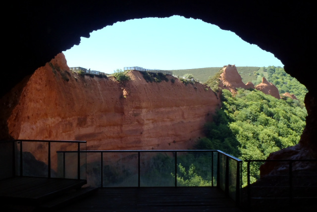 これらラス・メドゥラスの栗の木は、古代ローマ人が労働者の食料確保の為に植えたものだそうだ。土地が痩せたラス・メドゥラスにおいて、栗は貴重な食料だったのだろう。 金が枯渇した事でラス・メドゥラスは放棄されたが、栗の木はその後も繁茂を続け、ラス・メドゥラスの特異な地形を覆う程の森となったのだ。この栗の森がラス・メドゥラスの地形維持の役目を担い、切り立った山々が崩れる事無く今に残されたという説もある。 ![]() ここにもトンネルの跡が残っていた
