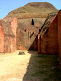 バスも出ているらしいが本数はなくほとんど期待はできない。 パハルプールの仏教遺跡群の中心、 ソーマプラ僧院跡は村からやや東に歩いたところにある。 遺跡はこんもりとした丘のような詞堂を中心とした広い敷地を持つ。 観光客はほとんど訪れず、いるとしてもバングラデシュ人かインド人の観光客ぐらいであり、 広い遺跡を独り占めすることができるだろう。 警備員と思わしき人が一人常駐しているが、 本来は立ち入り禁止の詞堂へ上らせてくれたり、いろいろ案内してくれることもある。 最後にバクシーシを求められるがそれほどしつこく要求してくることはない。 ジョエプールハットへのバスが出ているボグラの近くには、モハスタンという遺跡がある。 モハスタンはパハルプールと同時代、パーラ朝を代表する仏教都市遺跡。 モハスタン遺跡は広大な田園の中に城壁や寺院、僧院の跡などが点々と残されている。 パハルプールの仏教寺院遺跡群を見る際にはぜひ寄ってみたい。 モハスタンへもボグラからバスで行くことができる。 その遺跡はあまりに広大であるので、城壁周辺のもの以外を回る場合には リキシャやバンガリ(荷台つき自転車)を利用することとなる。 (2005年3月 訪問)