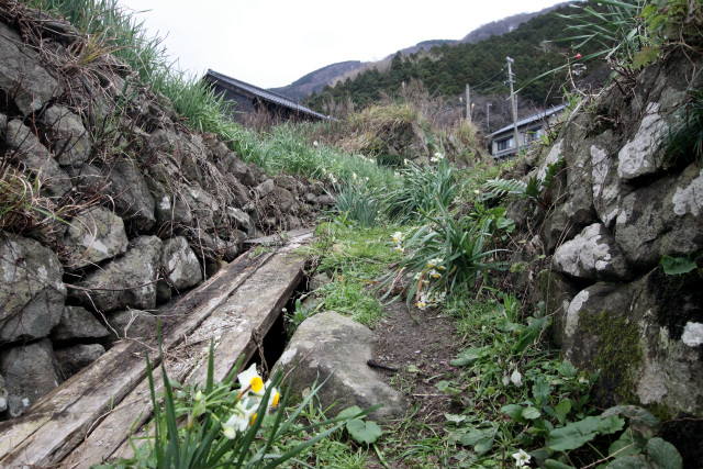 第二次世界大戦が勃発すると水仙の生産や販売は途絶えたものの、昭和28年(1953年)には出荷組合が再建されている。戦後復興において食糧事情が改善していくと米の需要が減少し、全国的に減反政策が進められていった。下岬地区ではミカンや柿などの果樹栽培が盛んとなり、棚田は水仙畑へと切り替えられていく。その後、より手間がかからず効率的に栽培できる水仙は面積をさらに拡大し、今に見られる水仙畑の景観が整えられていった。現在も居倉集落には棚田を潤す水を供給していた溜池や清水川と呼ばれる石積の用水路が残っており、また水仙畑の中には銀杏を採るためのイチョウやミカンの木が見られるなど、かつて下岬地区には水仙畑以外にも様々な生業があった歴史を伝えている。 2025年12月訪問